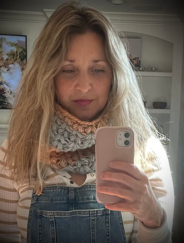 The pattern in Scarfie yarn worked up quickly and looks great, just like the Malabrigo version. If you have a basic knowledge of how to crochet, you can make this cowl. Just take your time and trouble shoot online when you need it. If you are an experienced crocheter, you will make this in a snap! It’s great for gifting because it is such a fast make and looks intricate with all the puff stitches. The self-striping ombre effect of Scarfie yarn makes it so easy to add more visual interest and really sets it all off.