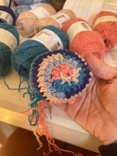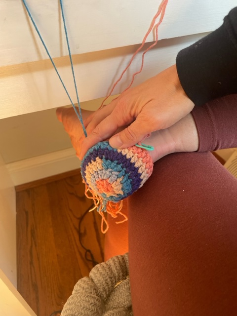 The yarn they recommended is Scheepjes Metropolis in the same gorgeous colors as the swirl image (seriously, check out the video below to see how dreamy they look), but we encountered some issues with shipping. Fortunately, a local yarn shop in Ohio, Around the Table Yarns, had all the yarn and were wonderful to work with. It arrived quickly, and my first impression was how soft and durable they skeins felt due to the blend of wool and nylon.