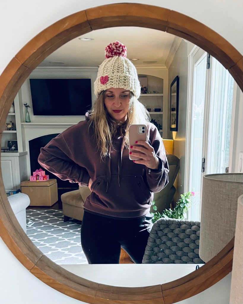 That led to making the hat in Kansas City Chiefs colors. I love how it works so well as a subtle way to support your favorite team. It’s obviously team colors, but with an element of style. Tres chic 💅