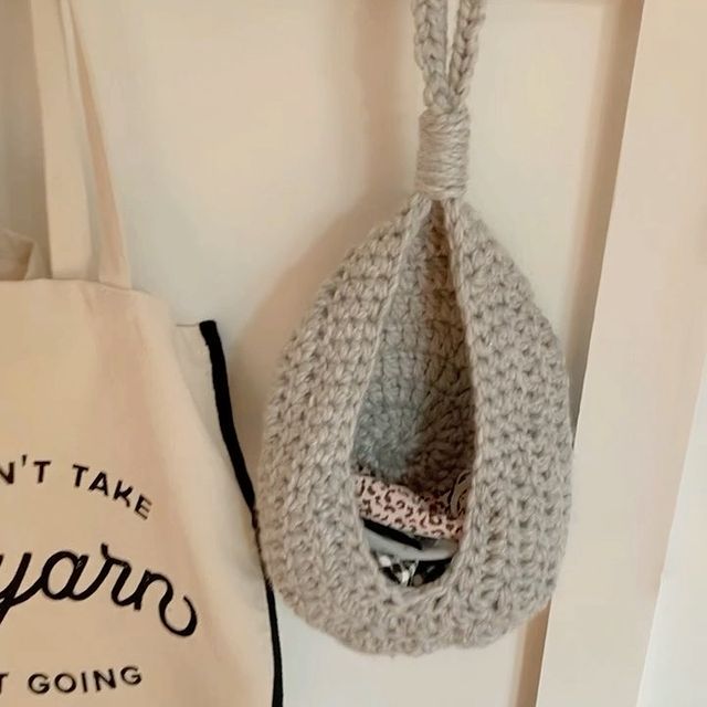 8. Hanging Basket: Hot tip: Use one strand of Lion Brand Wool-Ease Thick and Quick and a K hook instead of two strands of worsted weight yarn. No tangles as you work, lots of color options available, great texture.
